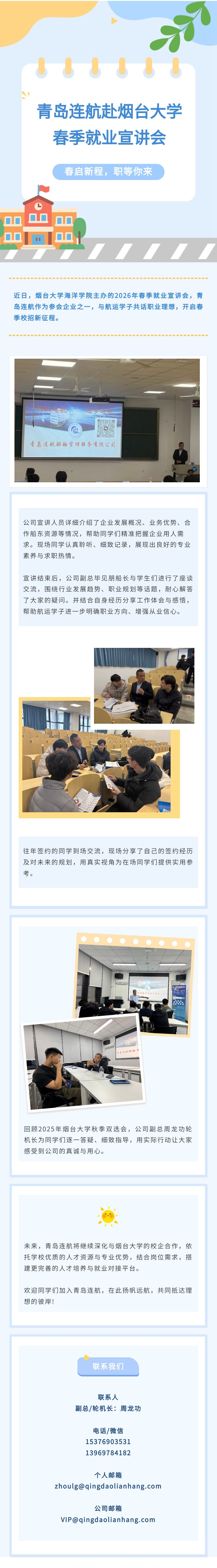 青島連航赴煙臺大學春季就業(yè)宣講會